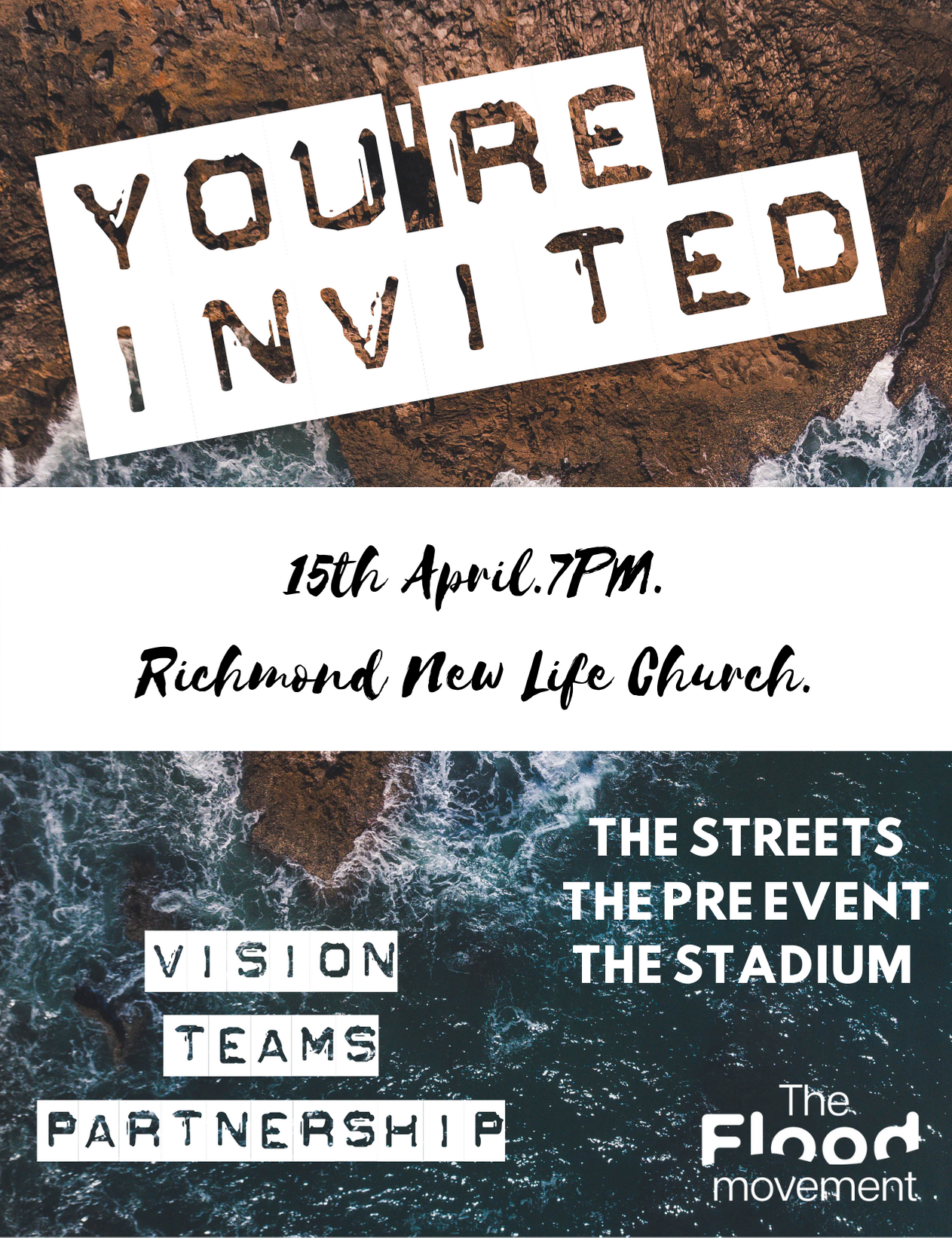 A night of hearing about the heart and vision of The Flood Movement, and a chance to sign up to teams and partner together. There will be a time of worship and Q&A.