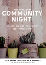 « All Events This event has passed. YWAM Nelson – Community Night March 31, 2021 @ 7:00 pm - 9:00 pm « YWAM Ship ‘Koha’ Returns YWAM Koha Medical Function » PRAYER – WORSHIP – FELLOWSHIP Lets gather together as a community Add to calendar Google Calendar iCalendar Outlook 365 Outlook Live Details Date: March 31, 2021 Time: 7:00 pm - 9:00 pm Event Category: Ministry Website: https://www.facebook.com/ywamnelsonnz/ Organiser YWAM Nelson Email https://www.ywamnelson.co.nz/contact/ View Organiser Website Venue YWAM Nelson 248 Wakapuaka Road, Wakapuaka Nelson, Nelson 7071 New Zealand + Google Map View Venue Website Related Events Blast Christmas Camp December 17 @ 9:00 am - December 19 @ 4:00 pm FREEDOM To Flourish December 17 @ 7:30 pm - 9:30 pm ‘Under The Sea’ Ultimate Camp January 12, 2026 - January 16, 2026