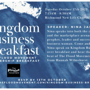 Join us for food, fellowship and a time together to hear from Nina James on Kingdom Business. We will then hear from Hannah Wilmshurst Founder of The Flood Movement, she will be sharing on the heart beat of The Flood…